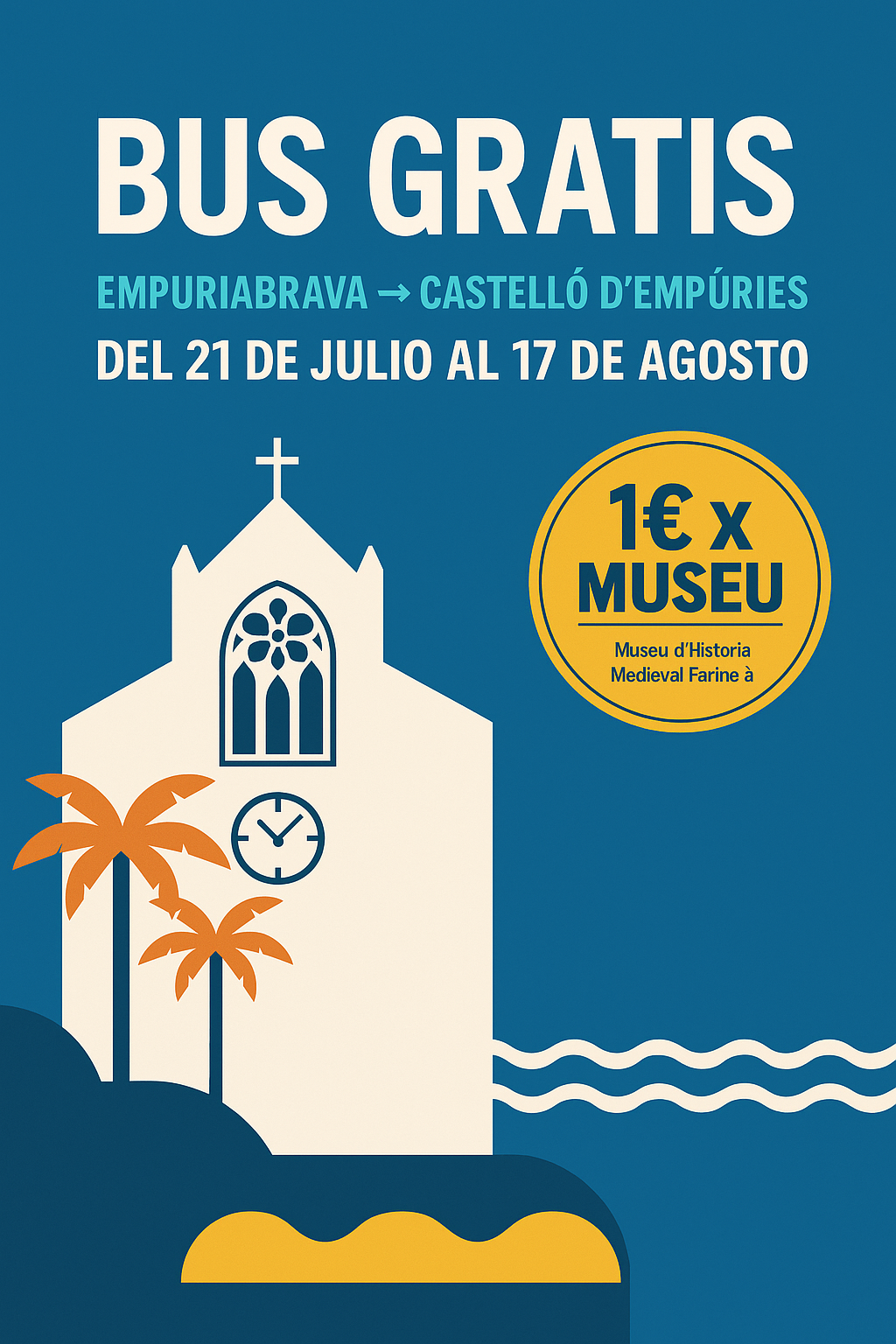 Del 21 de julio al 17 de agosto de 2025, vuelve el bus gratuito desde Empuriabrava hasta el centro histórico de Castelló d’Empúries. Este servicio diario permite a residentes y visitantes moverse cómodamente sin vehículo propio y disfrutar de todo lo que ofrece el municipio en verano.