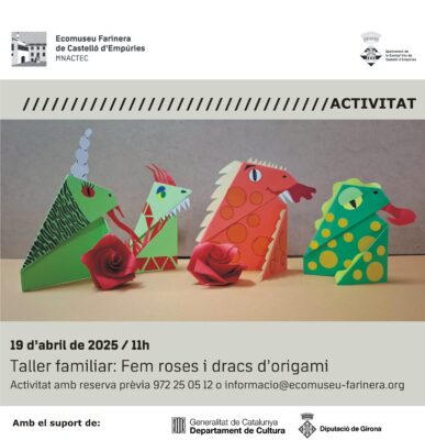 El sábado 19 de abril, a las 10.30 de la mañana, el grupo Escolta Xot organiza un taller gratuito en el auditorio del convento de Santa Clara de Mones de Easter a las 10.30 de la mañana, un poco más tarde, a las 11 a.m., el Farinera Ecomuseu organizará el ser anfitrión del Farinera. Taller de Familia Creativa: Hacemos una rosa y dragones con origami. Esta propuesta permitirá a los participantes aprender y crear dos de las figuras más emblemáticas en el Día de San Jorge, fomentando la imaginación y las manualidades.