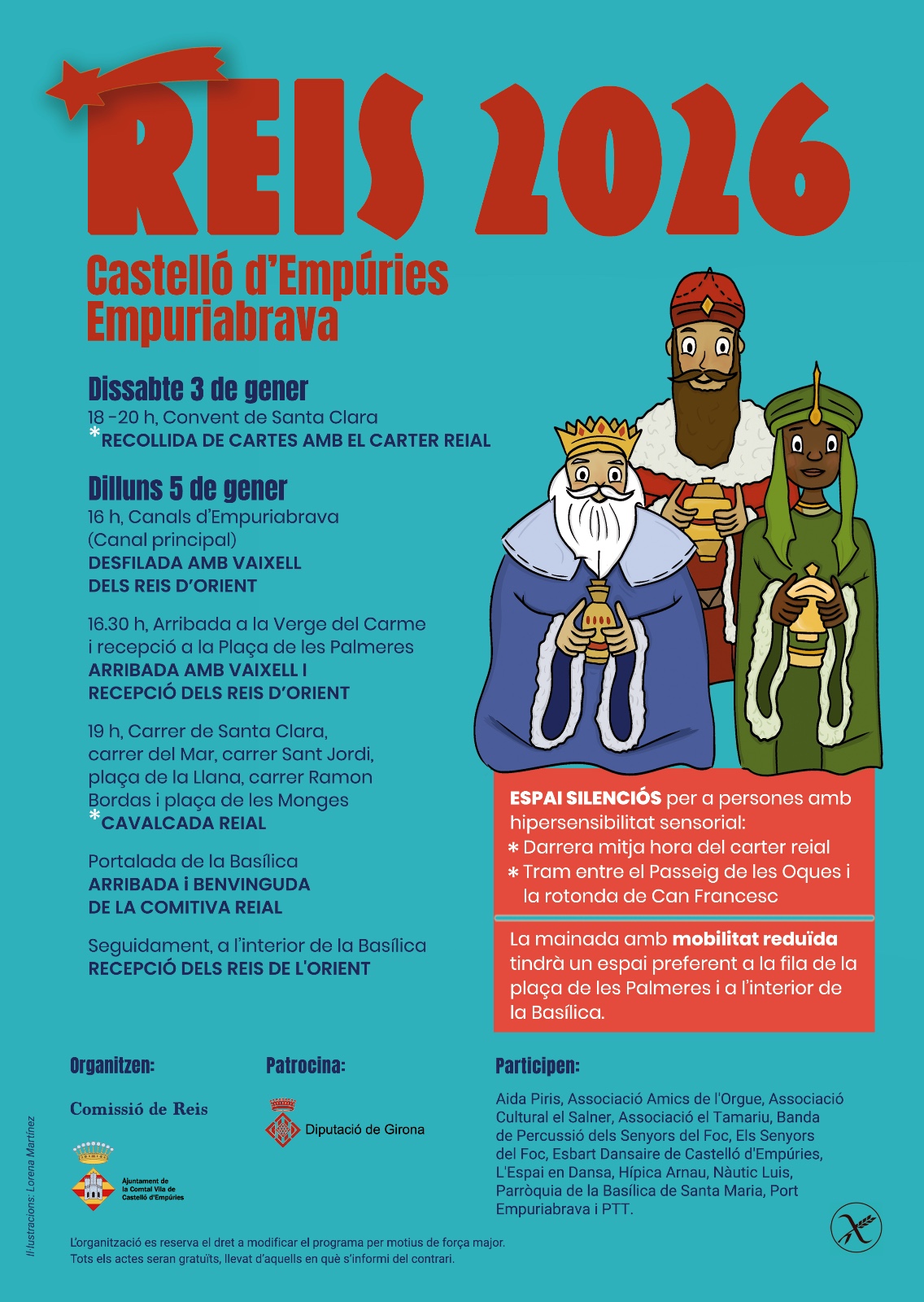 Como novedad destacada de este año, la cabalgata contará con una Espacio tranquilodiseñado para personas con hipersensibilidad sensorial. Este espacio estará habilitado durante la media hora del recorrido del Royal Carter y en el tramo comprendido entre el Passeig de les Oques y la rotonda de Cal Francesc, con el objetivo de garantizar una celebración más inclusiva.