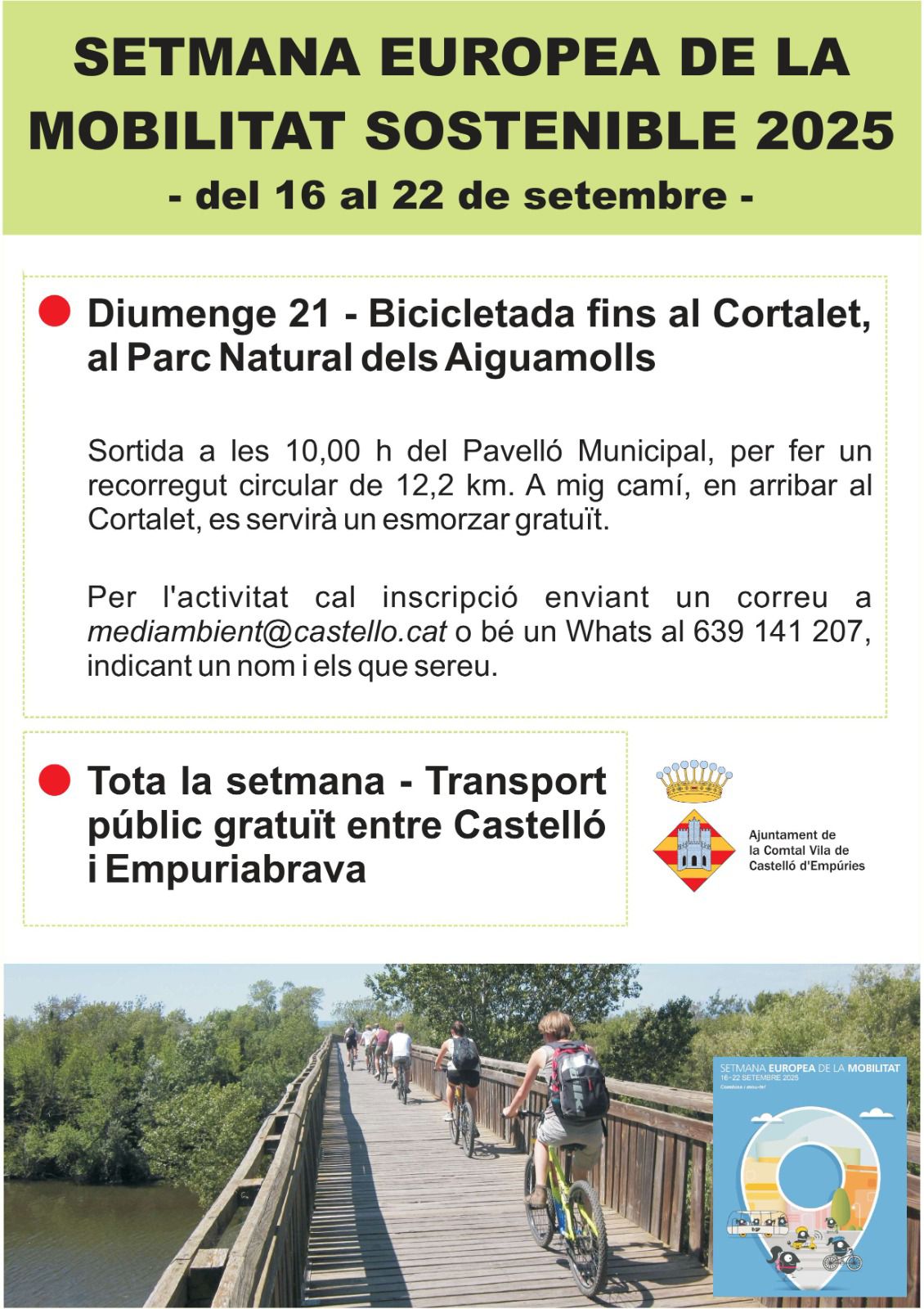 El Ayuntamiento de Castelló d'Epúries agrega un año más al Semana de movilidad sostenible Con propuestas que promueven hábitos más ecológicos y de salud.